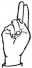 На ћирилици написано РАДНА МОМЧИЛОВИЋ састоји се из 15 слова [?]. Исписано ћириличном једноручном азбуком за глувонеме: